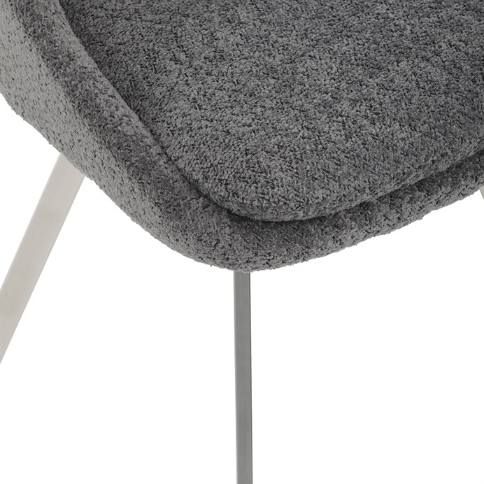 Moderní jídelní židle značky Autronic v elegantním šedém odstínu kombinuje styl a pohodlí. Potah z měkké látky Bouclé nabízí příjemný a odolný povrch, který se skvěle hodí do moderních interiérů. Čtyři nohy z broušeného nerezu zajišťují stabilitu a moderní vzhled, zatímco výplň z PU pěny poskytuje optimální komfort při sezení. Tato židle je ideální pro jídelny nebo moderní pracovní prostory. Díky svému designu a kvalitním materiálům zajišťuje dlouhou životnost i při každodenním používání. Výrazný kousek, který vynikne v každém interiéru.