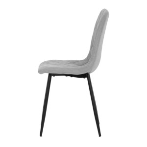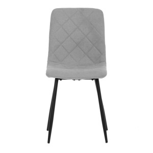Moderní, stylová a pohodlná – to jsou hlavní atributy této šedé jídelní židle s látkovým potahem a černými kovovými nohami.Tato elegantní jídelní židle je ideální volbou pro moderní interiéry. Maximální komfort je dosažen polstrováním sedáku i zádové opěrky. Čalounění z vysoce kvalitní hladké tkaniny zajistí skvělý komfort při jídle nebo dlouhých večerech s přáteli a rodinou.