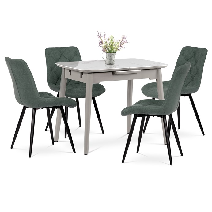 Moderní jídelní židle značky Autronic v zelenkavé barvě nabízí elegantní řešení pro jakýkoliv interiér. Její hladké čalounění s diamantovým prošíváním vytváří sofistikovaný vzhled, který dodá vašemu domovu styl. Židle je vybavena pevnými kovovými nohami v černém provedení, které zajišťují stabilitu a odolnost. Ergonomický tvar sedáku poskytuje komfort při dlouhém sezení, ať už u jídelního stolu, nebo v kanceláři. Tato židle je ideálním doplňkem pro moderní prostory, kde vynikne její čistý design a kvalitní zpracování.