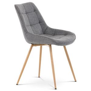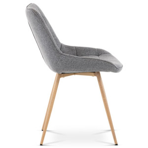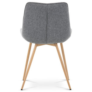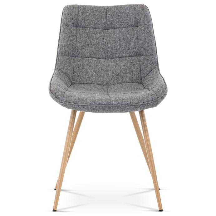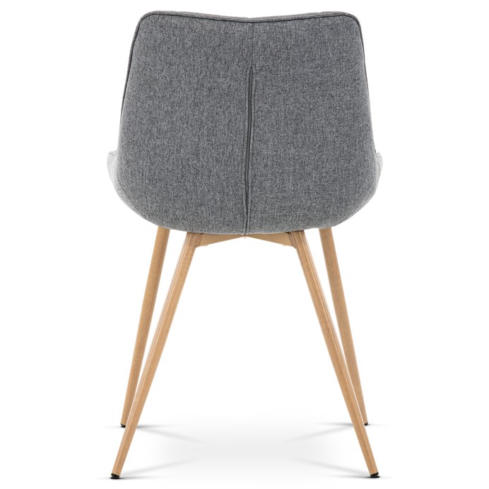 Jídelní židle CT-394 GREY2 kombinuje moderní design s pohodlím díky čalounění v šedé látce s výrazným designovým prošitím, které zdůrazňuje tvarované sedadlo a opěradlo. Pevné kovové nohy v dekoru dubu zajišťují stabilitu a dlouhou životnost, přičemž jejich povrchová úprava dodává židli přírodní vzhled. Židle nemá područky ani otočný mechanismus, což ji činí praktickou a snadno umístitelnou do různých prostorů. Ergonomicky tvarované sedadlo podporuje pohodlné sezení při jídelních aktivitách. Díky kvalitnímu zpracování a použitým materiálům je židle vhodná pro každodenní použití v domácnostech i komerčních prostorách.