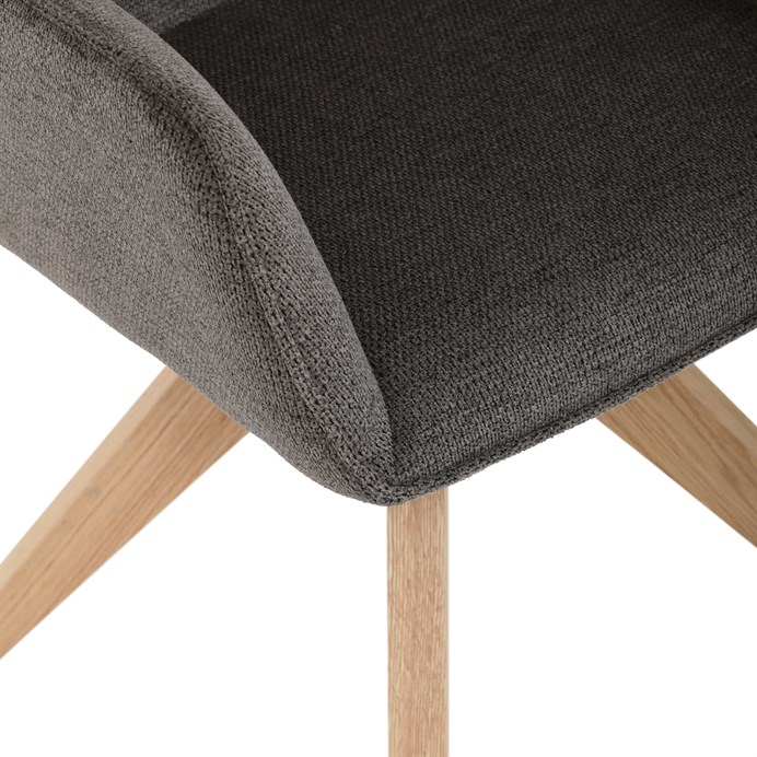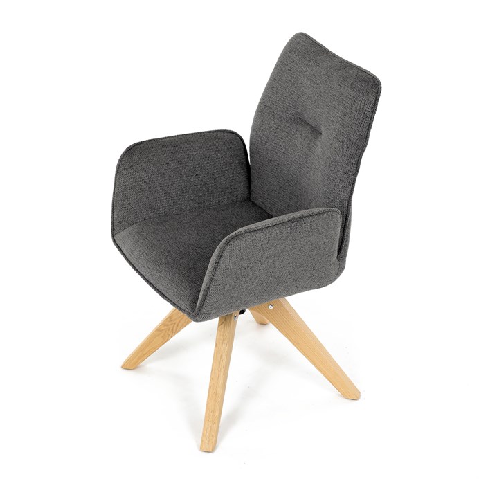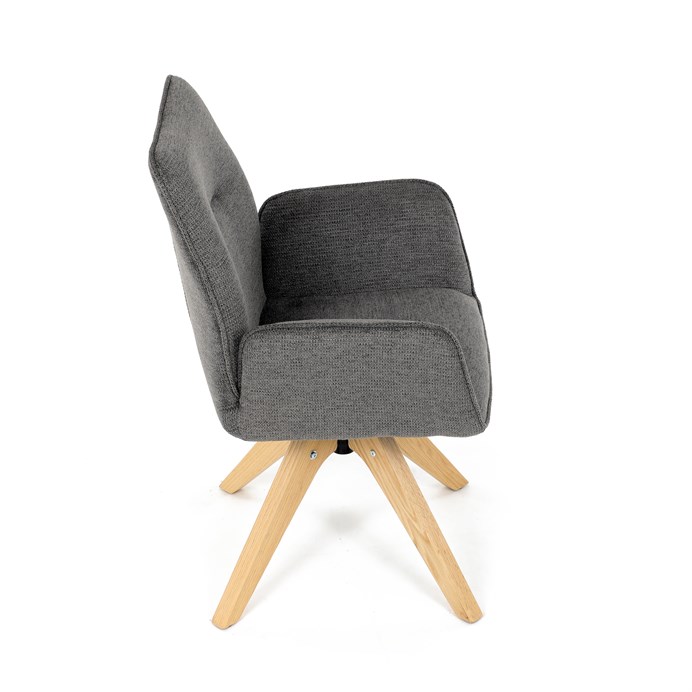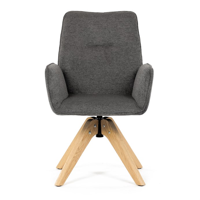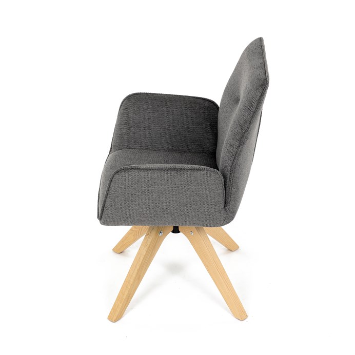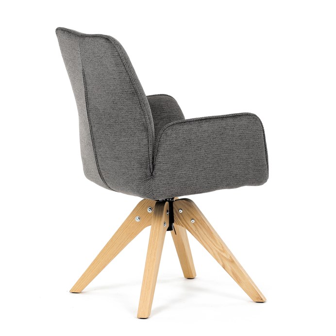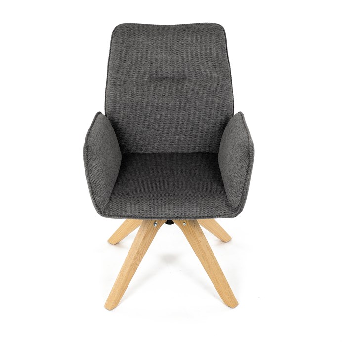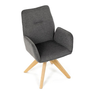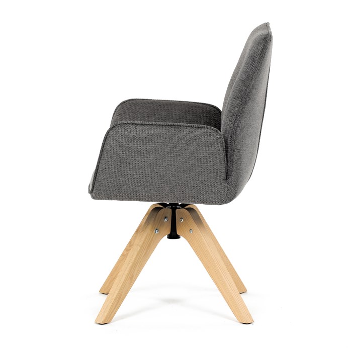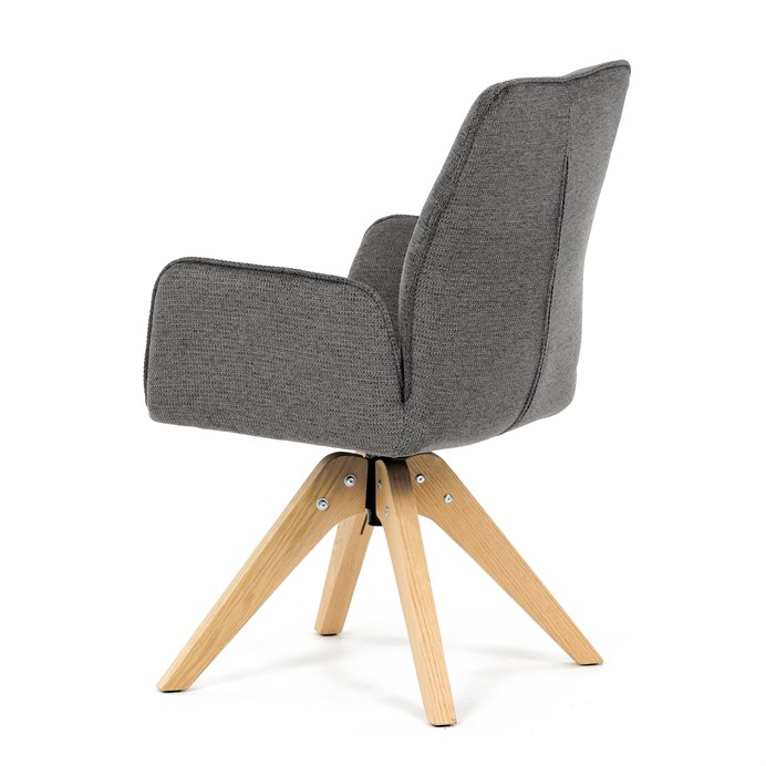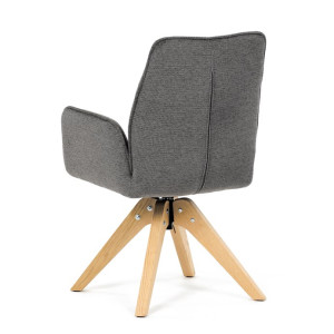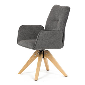 Stylová jídelní židle značky Autronic v moderním designu, která kombinuje komfort a eleganci. Její pohodlný sedák i opěrák jsou čalouněny voděodolnou látkou v příjemném tmavě šedém odstínu, což z ní činí skvělý doplněk do jakéhokoliv interiéru. Masivní dřevěné nohy v přírodní barvě dodávají židli stabilitu a odolnost, zatímco otočný mechanismus s funkcí 360° přináší uživatelský komfort. Tato jídelní židle je ideální nejen do domácností, ale také do kaváren či restaurací, kde je požadován moderní a funkční nábytek.