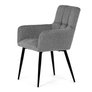 Elegantní šedá jídelní židle od značky Autronic skvěle doplní moderní i klasické interiéry. Tato stylová židle nabízí vysoký komfort díky čalounění z kvalitní látky a mekkému sedáku z PU pěny. Černé kovové nohy zajišťují stabilitu a dodávají židli jemný industriální nádech. Komfortní područky a ergonomické provedení oceníte při každém posezení. Židle se hodí nejen do domácí jídelny, ale i do restauračních prostor, kde vytvoří útulnou atmosféru.