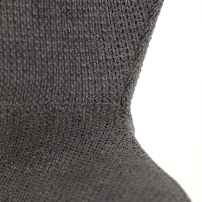 Čalounění židle v šedé látce je obohacené o jemné reliéfy a přináší na dotek luxusní a příjemný zážitek. Tato volba materiálu nejenže dodává křeslu hloubku a charakter, ale také zajišťuje odolnost a snadnou údržbu, což je nezbytnou součástí rušných kanceláří i útulných domácích prostor.