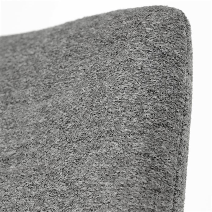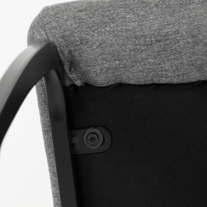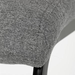 Židle je čalouněná jemnou šedou látkou, která je měkká na dotek a odolná proti opotřebení. Ergonomický tvar a polstrované sedadlo spolu s pohupovou podnoží v černé barvě zajišťují díky lehkému pružení komfort při sezení. Ozdobné prošívání na opěradle dodává židli elegantní vzhled.