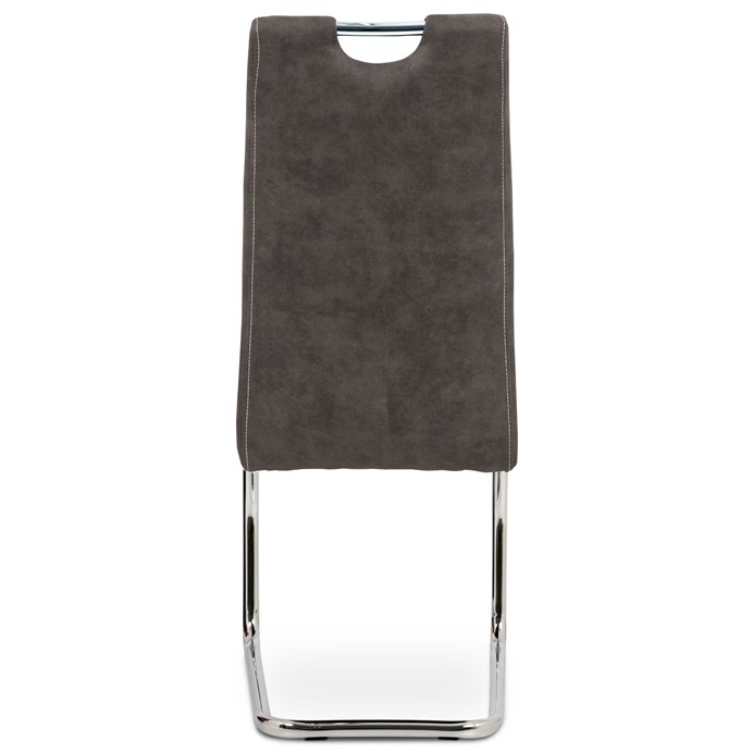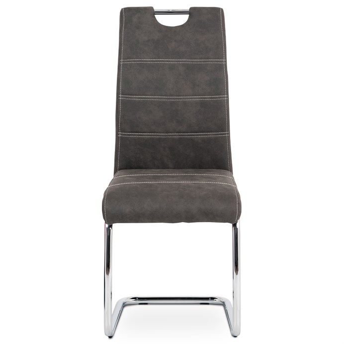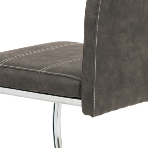 Jídelní židle HC-483 GREY3 kombinuje moderní design s pohodlným sezením díky potahu z antracitově šedé látky v dekoru vintage kůže, která nabízí příjemnou texturu a snadnou údržbu. Pevná kovová podnož s pohupovým mechanismem zajišťuje stabilitu a zároveň mírný pohyb pro větší komfort během stolování. Židle nemá područky ani možnost výškového nastavení, což umožňuje snadné zasunutí pod stůl a úsporu prostoru. Ergonomicky tvarované opěradlo podporuje správné držení těla, zatímco kvalitní zpracování materiálů je navrženo pro dlouhou životnost. Celková konstrukce je stabilní a vhodná pro běžné domácí použití.