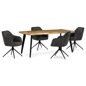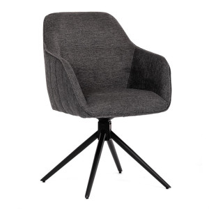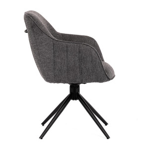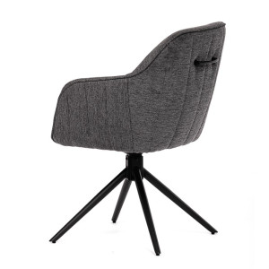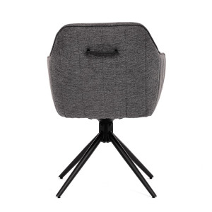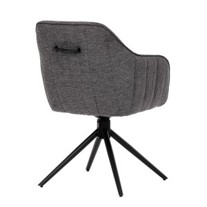 Moderní jídelní židle v šedé barvě s efektním prošitím zádové i přední části opěráku. Prošití je v brvě potahového materiálu. Zadní část opěráku je opatřena vkusným madlem pro snazší manipulaci. Čtyři kovové nohy v matném práškovém nástřiku vycházejí z centrálního bodu ve středu sedáku. Sedák je otočný o P90°+ L 90° s vratným mechanismem - funkce reset.