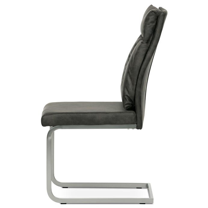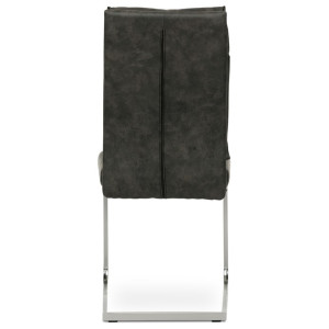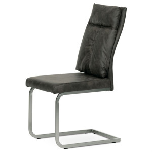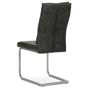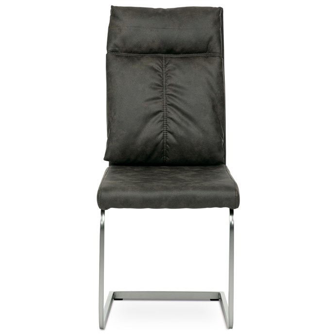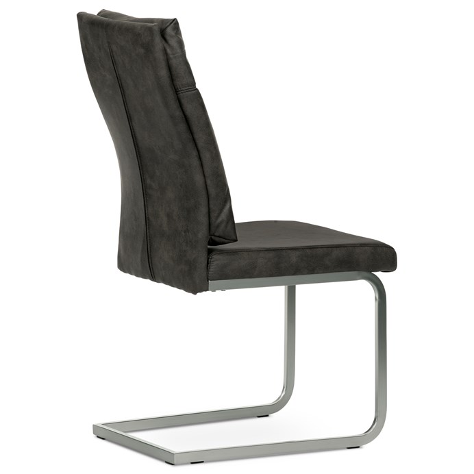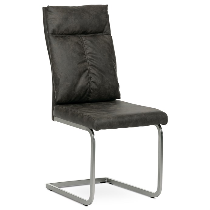 Designová jídelní židle s vysokým extra polstrovaným opěradlem. Potah je z látky v šedohnědém odstínu ve velmi žádaném dekoru vintage kůže. Prošití přední části opěráku je ve tvaru "T" vytváří trendy zvrásnění a záhyby na povrchu potahu. Polstrování je z velmi kvalitní PU pěny. Použitá látka je na povrchu hladká, velmi dobře se udržuje a čistí.