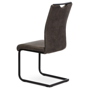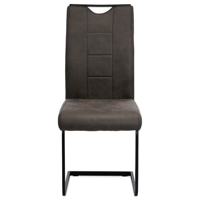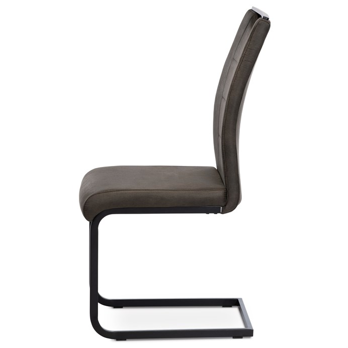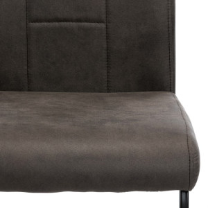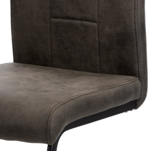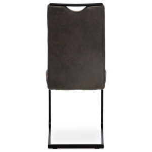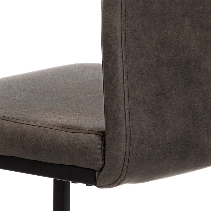 Jídelní židle v šedé látce s dekorem vintage kůže kombinuje moderní design s praktickými vlastnostmi. Čalounění je doplněno designovým prošitím, které zvýrazňuje estetiku opěradla a sedáku, zatímco pevný kovový rám s černým lakem zajišťuje stabilitu a dlouhou životnost. Židle je vybavena pohupovým mechanismem, který přispívá k pohodlnému sezení a mírné dynamice během užívání. Absence područek umožňuje snadné zasunutí pod stůl a šetří prostor v jídelně. Díky kombinaci kvalitních materiálů a ergonomického tvarování je židle vhodná pro každodenní použití s nosností odpovídající standardům jídelních židlí.