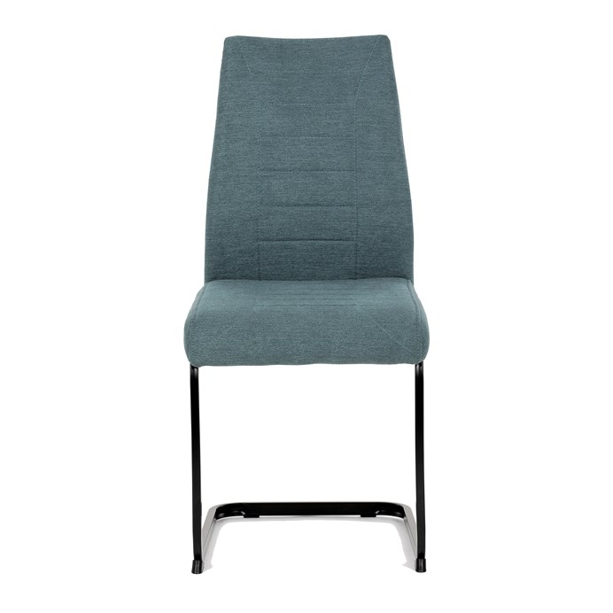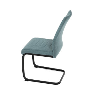 Židle je čalouněná jemnou, tmavě zelenkavou látkou, která je měkká na dotek a odolná proti opotřebení. Ergonomický tvar a polstrované sedadlo spolu s pohupovou podnoží v černé barvě zajišťují díky lehkému pružení komfort při sezení. Ozdobné prošívání na opěradle dodává židli elegantní vzhled.