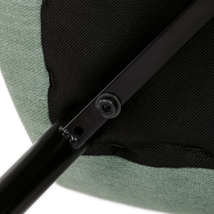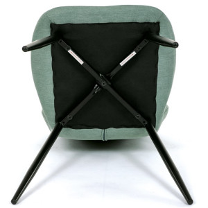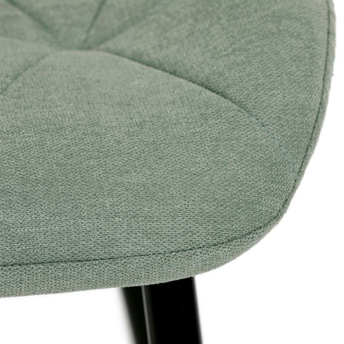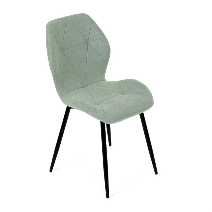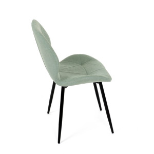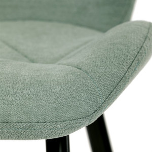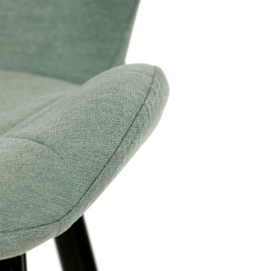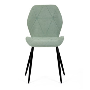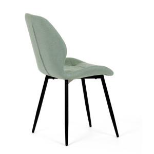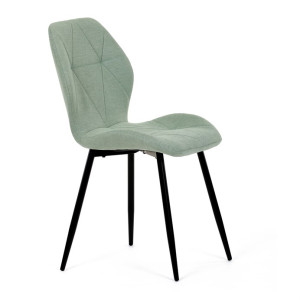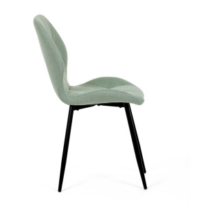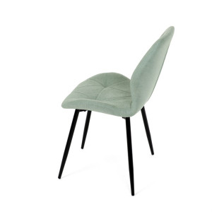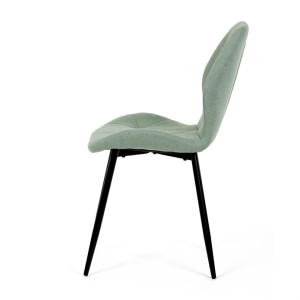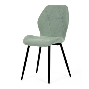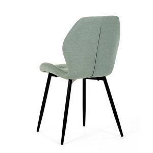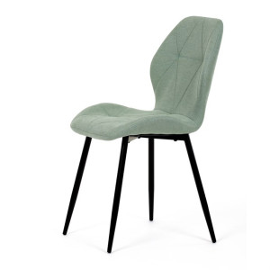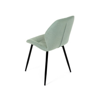 Židle je čalouněná kvalitní látkou, která je měkká na dotek a zároveň odolná proti opotřebení. Ergonomicky tvarované sedadlo a opěradlo s dekorativním prošíváním poskytují vysoký komfort i při delším sezení. Židle stojí na pevných kovových nohách v černém provedení, které zajišťují stabilitu a dlouhou životnost. Nohy jsou elegantně zkosené, což dodává židli moderní vzhled a zajišťuje pevnou stabilitu.