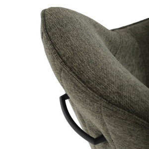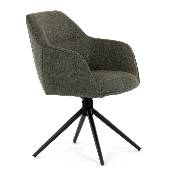 Moderní jídelní židle v zelené barvě s efektním prošitím zádové i přední části opěráku. Prošití je v brvě potahového materiálu. Zadní část opěráku je opatřena vkusným madlem pro snazší manipulaci. Čtyři kovové nohy v matném práškovém nástřiku vycházejí z centrálního bodu ve středu sedáku. Sedák je otočný o P90°+ L 90° s vratným mechanismem - funkce reset.
