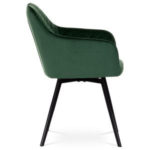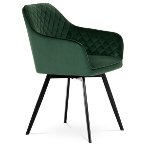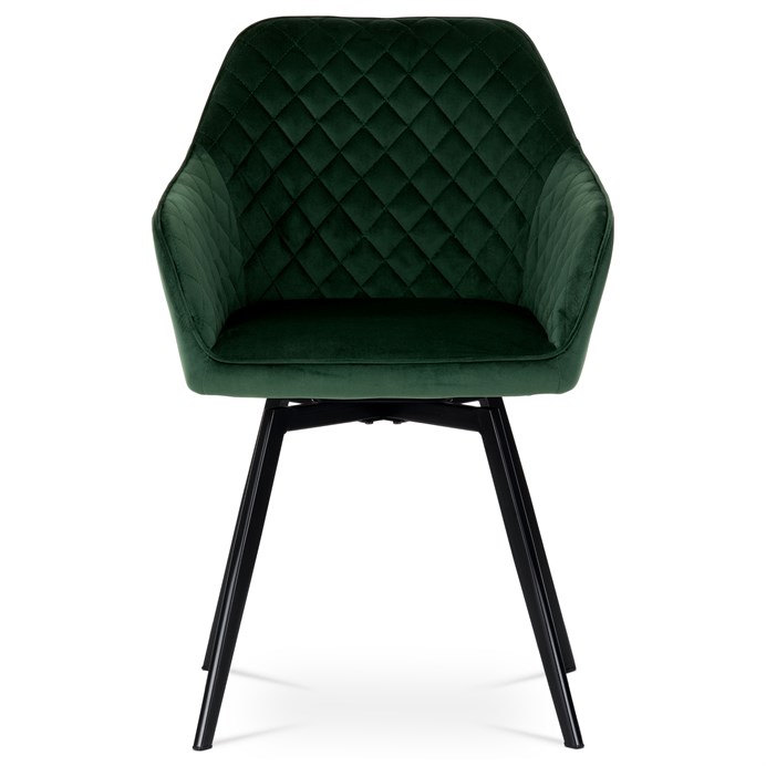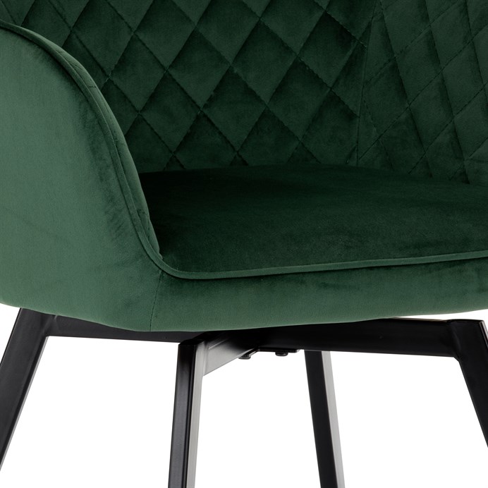 Díky svému dokonalému designu je tato židle v industriálním stylu nezaměnitelná a zároveň velmi pohodlná. Skořepina sedáku a opěradla má potah z kvalitní látky v smaragdově zeleném matném sametu. Polstrování je z PU pěny. Velmi dekorativním prvkem je výrazné kosočtvercové prošití vnitřních ploch v barvě potahu a paspule po obvodu celé skořepiny. Vybraná látka se také velmi dobře čistí. Stabilitu židle zajišťují čtyři kónické kovové nohy obdélníkového průřezu s kvalitním práškovým nástřikem v černé matné barvě. Ukončené jsou černými plastovými kluzáky, zabraňující poškození tvrdých povrchů podlah. Tato provedení produkují z tohoto modelu židle skvělou volbu pro zařízení obývacích či jídelních, ale také zasedacích místností. Nosnost židle je 110 kg.