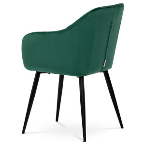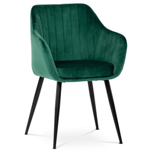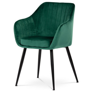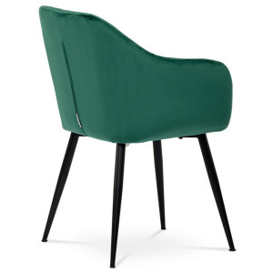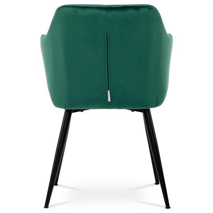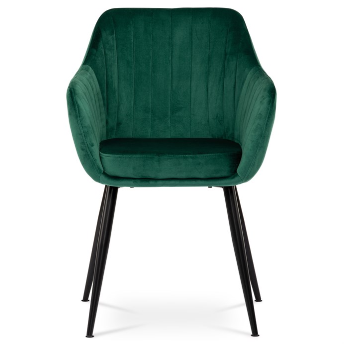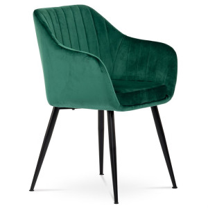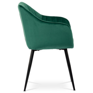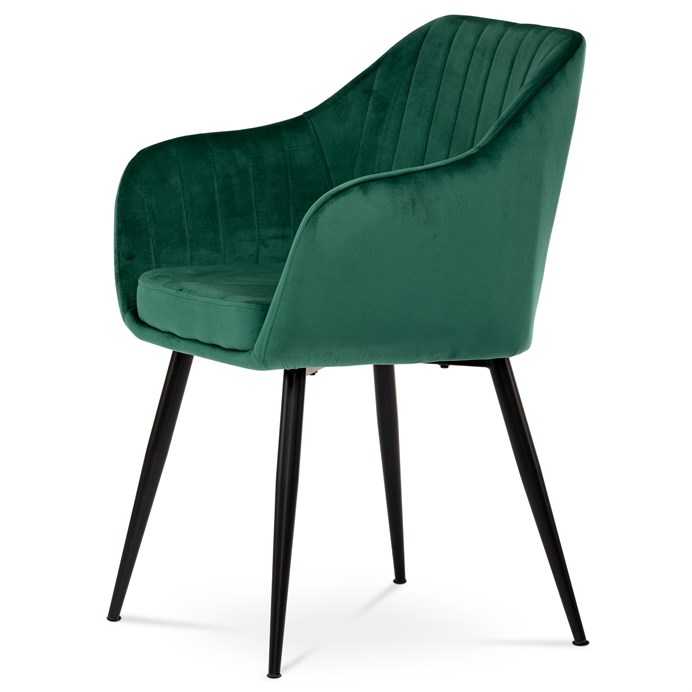 Dokonalý design, industriální styl a perfektní pohodlí je pro tuto židli samozřejmostí. Skořepina sedáku i opěradla má pevnou kovovou kostru, potah z velmi kvalitní sametové látky v matném provedení v trendy odstínu smaragdově zelené. Polstrování je z PU pěny. Bonusem ke zvýšení pohodlí posedu je 8 cm zvýšený a extra polstrovaný sedák a praktické pohodlné opěrky s opěrnou plochou ve výšce 69 cm od podlahy. Příjemný dekorativní prvek vytvářejí svislá prošití vnitřních částí opěradla i boků. Použitá látka je velmi odolná a perfektně se čistí.