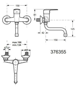 vývod 150 mmrozteč 150 mmpřipojení G 1/2barva chromprůtok při tlaku 3 bary 8 l/minpřipojení G 1/2s otočným ramínkemperlátor Neoperl - typ Z, splňuje EN 246PARAMETRY:Montáž: nástěnnáOvládání:...