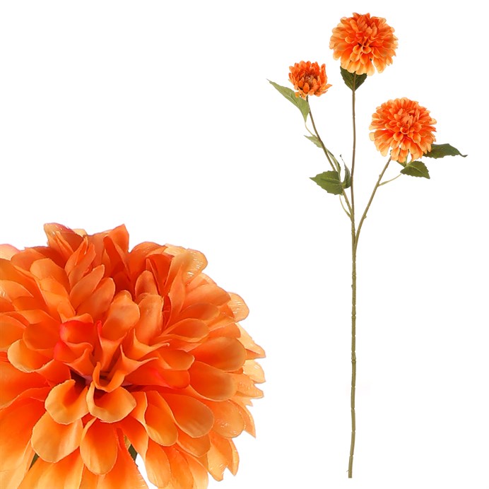 Dotaz na produktUžijte si trvalou krásu typické podzimní květiny po celou sezónu i mnoho dalších let, díky umělé jiřině s oranžovou barvou květu. V řezané podobě se třemi hlavami a svým věrohodným zpracováním, přináší do vašeho prostoru oživení a příjemný barevný tón. Díky svému realistickému vzhledu je snadné kombinovat ji s dalšími květinami a přízdobami. Naopak, bude vypadat skvěle i samostatně umístěná v elegantní váze, kde bude vynikat svým jedinečným půvabem. Navíc zůstane svěží napořád, aniž by hrozilo její uvadnutí a opadávání lístků.