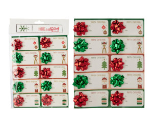Vánoční samolepicí jmenovky s mašlí krásně ozdobí dárky.