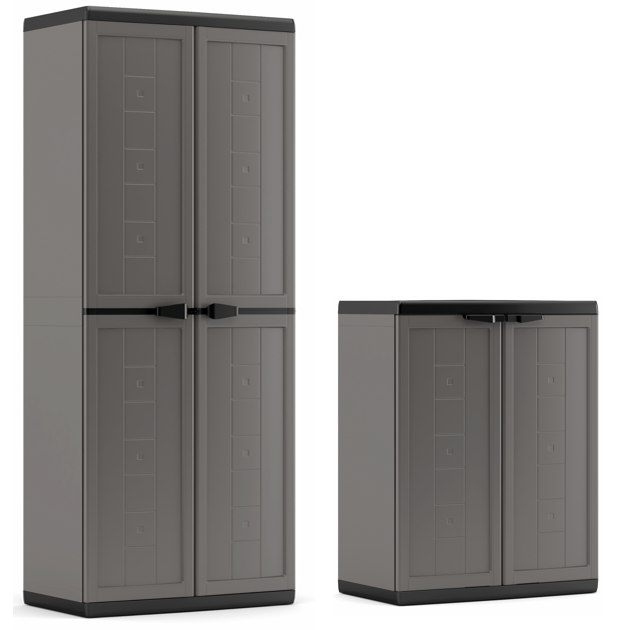 Dotaz na produkt Na splátky ještě dnesVytvořte si dílenskou stěnu ze setu skříní z řady JOLLY v šedém provedení. Plastové skříně JOLLY LOW a JOLLY HIGH italské výroby jsou oblíbené pro svou snadnou montáž, ke které není potřeba nářadí. Další jejich výhodou jsou snadno posunovatelné poličky i přizpůsobení na visací zámek. snadná montáž bez potřeby nářadí uzamykatelná na visací zámek (není součástí balení) poličky snadno posunete nahoru či dolů podle svých potřeb JOLLY HIGH - 3 police, nosnost každé 15 kg JOLLY LOW - 1 police, nosnost 15 kg dvoudvéřové provedení