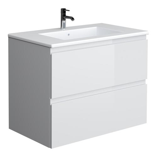 JOY Skříňka závěsná 80 cm pod umyvadlo, 2 zásuvky full výsuv se soft-close, Lamilak, pure white