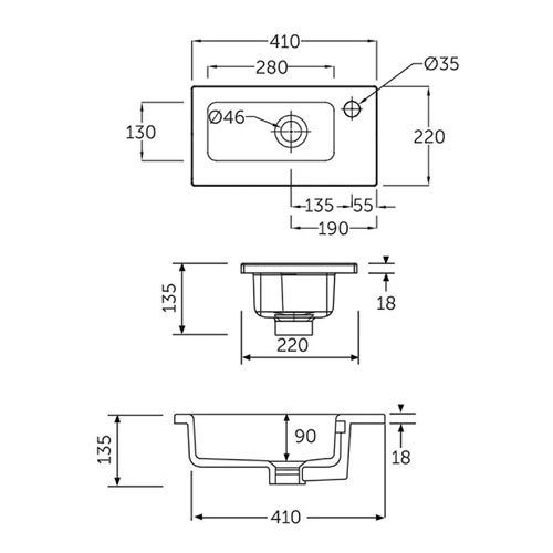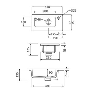 JOY Umyvadlo nábytkové 41 cm s otvorem pro baterii, s přepadem, bílá