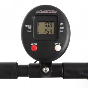 Počítač zobrazuje čas, spálené kalorie a počet skoků za minutu. Trampolína je vybavena držadlem se 4 polohami (99-123 cm), které lze namontovat a zase demontovat. Při skákání tudíž posílíte i svaly zad a paží, s jejichž pomocí vynášíte tělo co nejvýše.