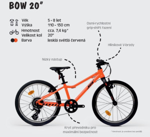 "Ultralehké kolo BOW 20" není jen kolo, je to startovací rampa pro budoucí cyklistické hvězdy. Je to nástroj, který dětem pomůže objevovat svět, překonávat překážky a zažívat neopakovatelné zážitky."