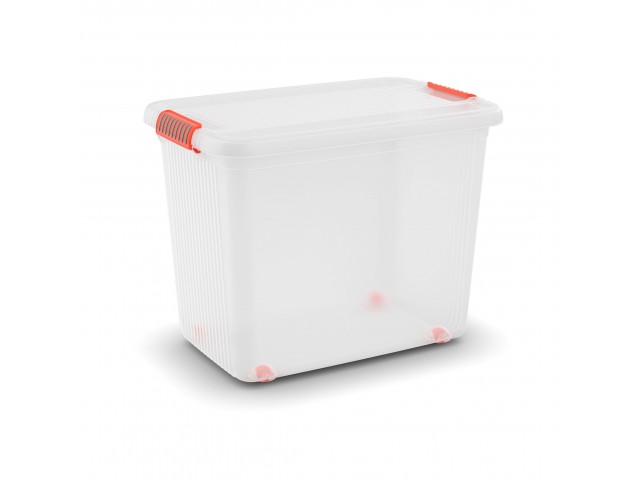 Odolný úložný box značky KIS v průhledno-oranžovém provedení o objemu 69 litrů. S Boxem se výborně manipuluje díky čtyřem kolečkům a ergonomickým rukojetím. Box je dodáván i s víkem s klipovým uzavíráním.