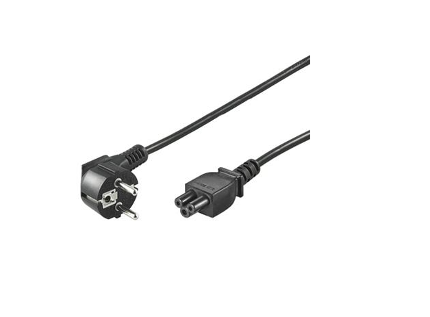 Napájecí kabel v černém provedení pro notebook. Třížilový kabel je zakončený zástrčkou typu "Mickey mouse" IEC 320 C5.
