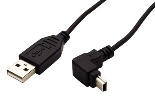 USB 2.0 kabel pro fotoaparáty s koncovkou USB A(M) a miniUSB 5pinB(M) 90° lomeným konektorem.