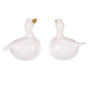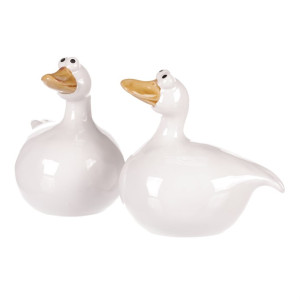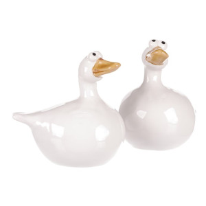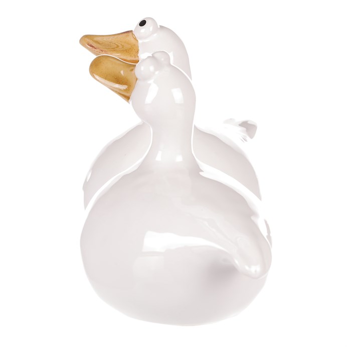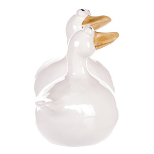 Dotaz na produktKeramická figurka kachny v bílém provedení představuje vkusný dekorativní doplněk vhodný do interiérů i na zahradu. Každá figurka má originální tvar s jemně lesklým povrchem a detaily v podobě zlatavého zobáku a výrazných očí, které dodávají postavičce hravý charakter. Díky pevnému keramickému materiálu je snadná na údržbu a navržena pro dlouhou životnost. Figurky jsou dostupné ve dvou variantách, které lze libovolně kombinovat pro zajímavé aranžmá. Jsou ideální pro oživení prostoru na poličce, parapetu nebo jako součást tematické dekorace.