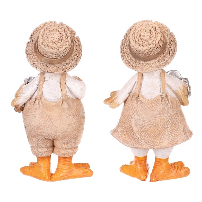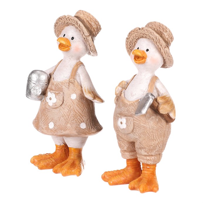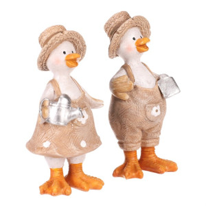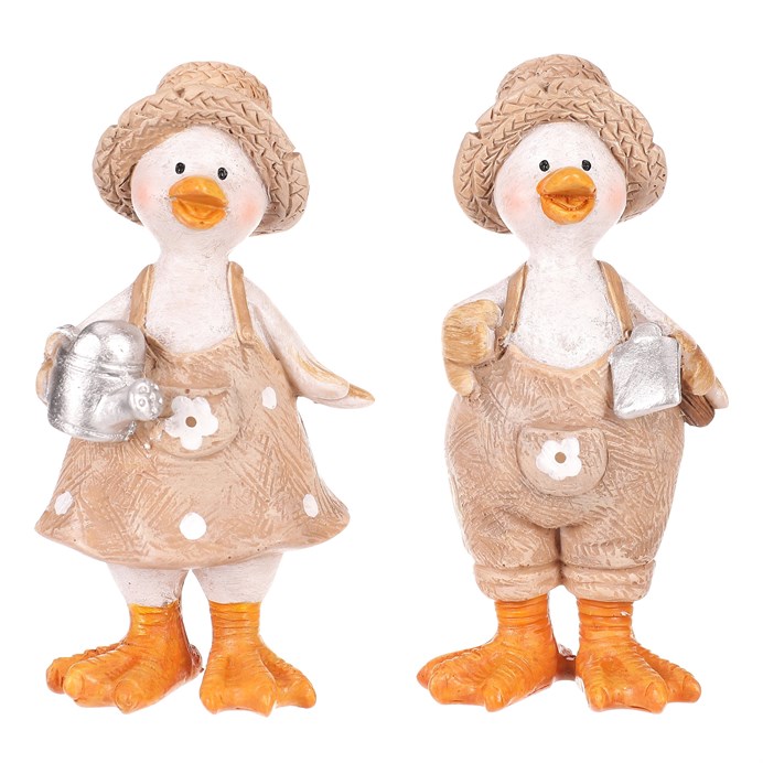 Dotaz na produkt Na splátky ještě dnesKachny v zahradnickém oděvu se slaměnými kloboučky, kde kachna drží konvičku a kačer motyčku, přináší do zahrady nádech hravosti a venkovské pohody. Tento mix dvou druhů veselých figurek z polyresinu skvěle oživí každý kout vašeho venkovního prostoru.