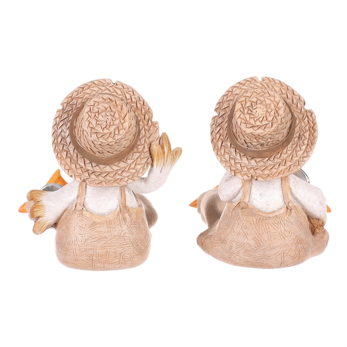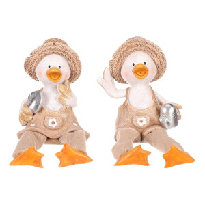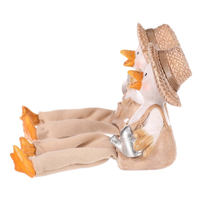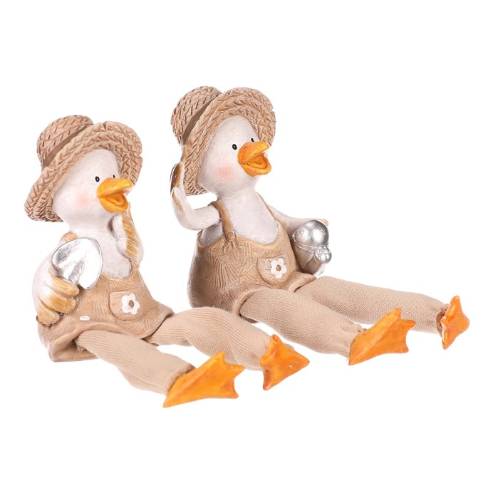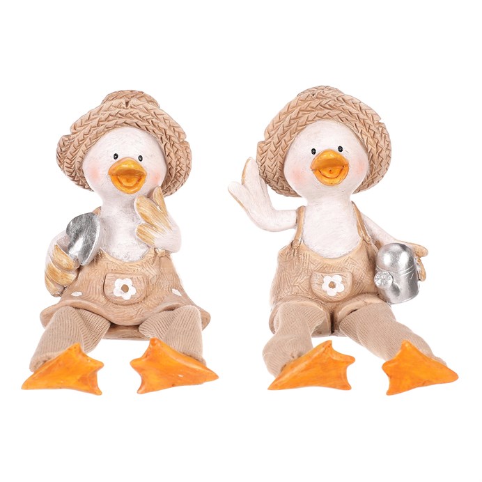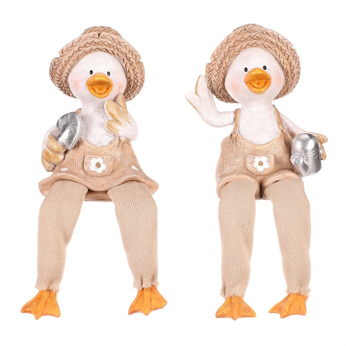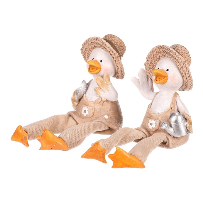 Dotaz na produktTyto veselé kachny se slaměnými kloboučky a visícíma nohama dodají vaší zahradě nebo terase špetku humoru a stylu. V mixu dvou druhů, jedna kachna drží konev a druhá lopatku, obě jsou oblečeny v zahradnickém stylu a připraveny přivítat každého návštěvníka s úsměvem.
