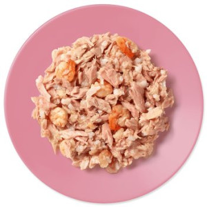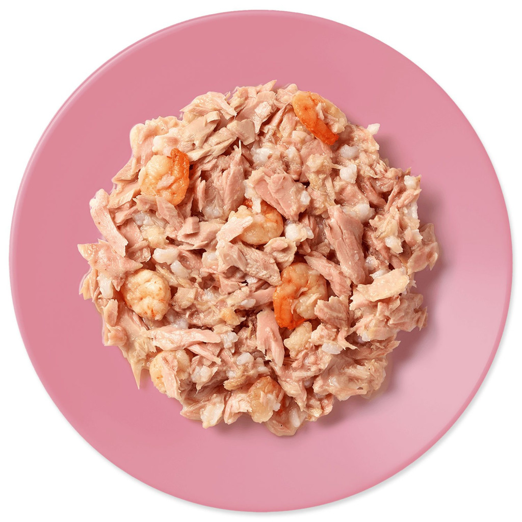 56% tuňák filety, 35% rybí vývar, 5% rýže, 4% krevety.