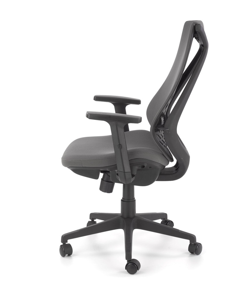 Kancelářská židle je potažená látkou. Stabilita židle je zaručena klasickou základnou s pěti kolečky a využitím mechanismu TILT, který umožňuje díky plynovému zvedáku snadnou regulaci výšky sedáku. Pomocí šroubu pod sedákem je možné nastavit volné houpání nebo blokaci vertikální polohy během práce.