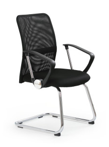 Kancelářská židle Vire Skid je potažená černou tkaninou a síťkou a stabilita židle je zaručena klasickou základnou.