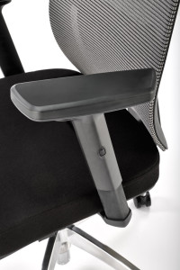 Kancelářské křeslo je potažené černo-šedou síťkou a jeho stabilita je zaručena klasickou základnou s pěti kolečky. Křeslo využívá mechanismu MULTIBLOCK, umožňuje nastavení výšky sezení s možností houpání a aretaci v 5 polohách.. Pomocí šroubu pod sedákem je možné nastavit volné houpání nebo blokaci vertikální polohy během práce.