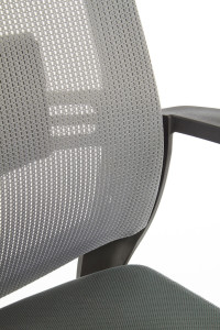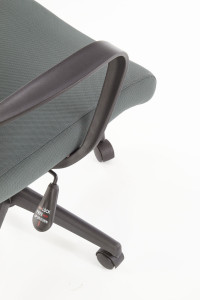 Kancelářské křeslo je potažené černo-červenou tkaninou a jeho stabilita je zaručena klasickou základnou s pěti kolečky. Křeslo využívá mechanismu TILT, umožňuje nastavení výšky sezení s možností houpání. Pomocí šroubu pod sedákem je možné nastavit volné houpání nebo blokaci vertikální polohy během práce.
