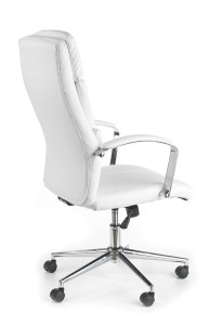 Kancelářské křeslo Aurelius je potažené bílou eko kůží a jeho stabilita je zaručena klasickou chromovanou základnou s pěti kolečky. Křeslo využívá mechanismu TILT, který umožňuje díky plynovému zvedáku snadnou regulaci výšky sedáku. Pomocí šroubu pod sedákem je možné nastavit volné houpání nebo blokaci vertikální polohy během práce.
