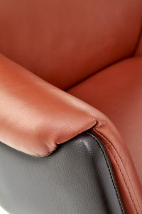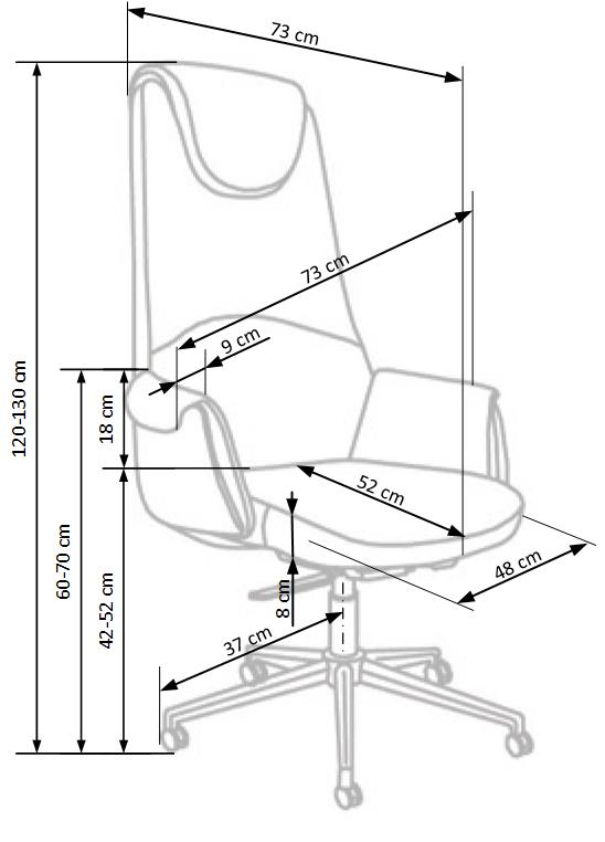 Kancelářské křeslo je potažené šedou tkaninou a jeho stabilita je zaručena klasickou základnou s pěti kolečky. Nosnost křesla je 100 kg.