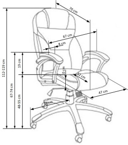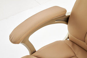 Kancelářské křeslo Desmond je potažené béžovou. šedou, tmavě hnědou nebo černou eko kůží a jeho stabilita je zaručena klasickou chromovanou základnou s pěti kolečky potažené gumou. Křeslo využívá mechanismu TILT, který umožňuje díky plynovému zvedáku snadnou regulaci výšky sedáku. Pomocí šroubu pod sedákem je možné nastavit volné houpání nebo blokaci vertikální polohy během práce. Nosnost křesla je 136 kg.