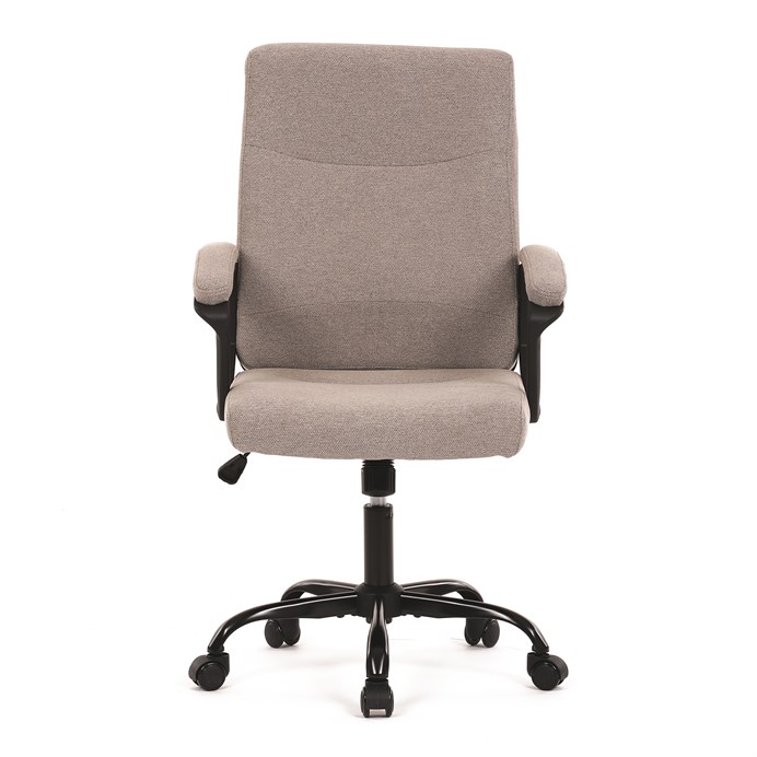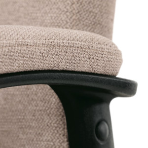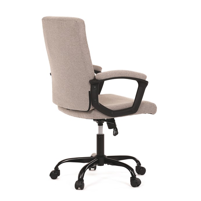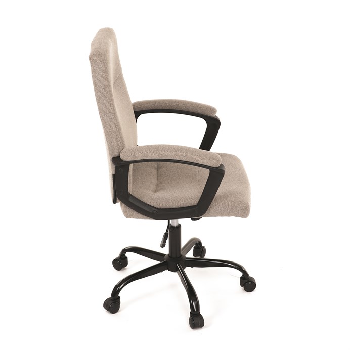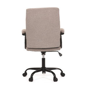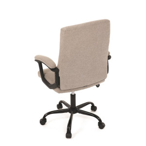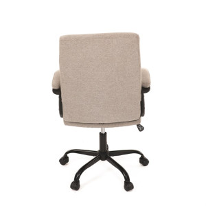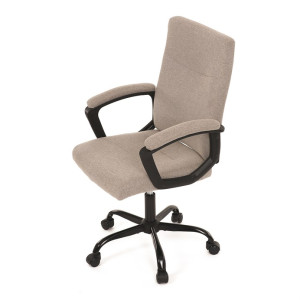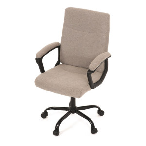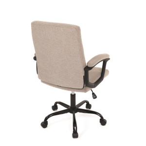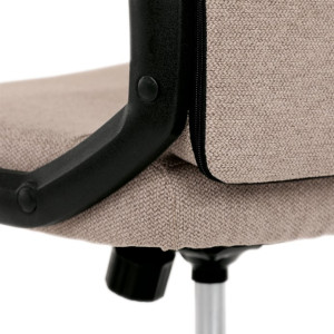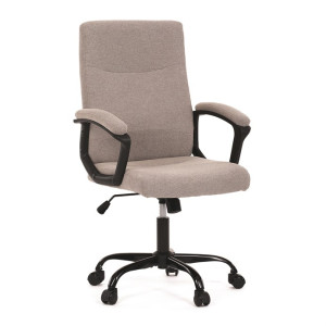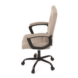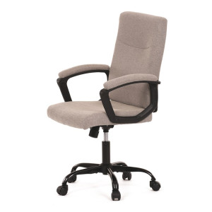Kancelářské křeslo v krémovém odstínu je čalouněné příjemnou látkou, která zajišťuje komfortní sezení. Pevné područky jsou rovněž čalouněné, což přispívá k celkovému pohodlí během práce. Kovový kříž poskytuje stabilní základnu s kolečky pro snadnou mobilitu. Křeslo je vybaveno houpacím mechanismem a umožňuje výškové nastavení sedáku, což umožňuje přizpůsobení individuálním potřebám uživatele. Design je jednoduchý a funkční, vhodný do kancelářských i domácích pracovních prostor.