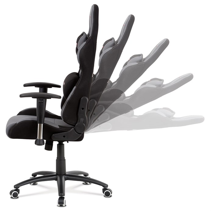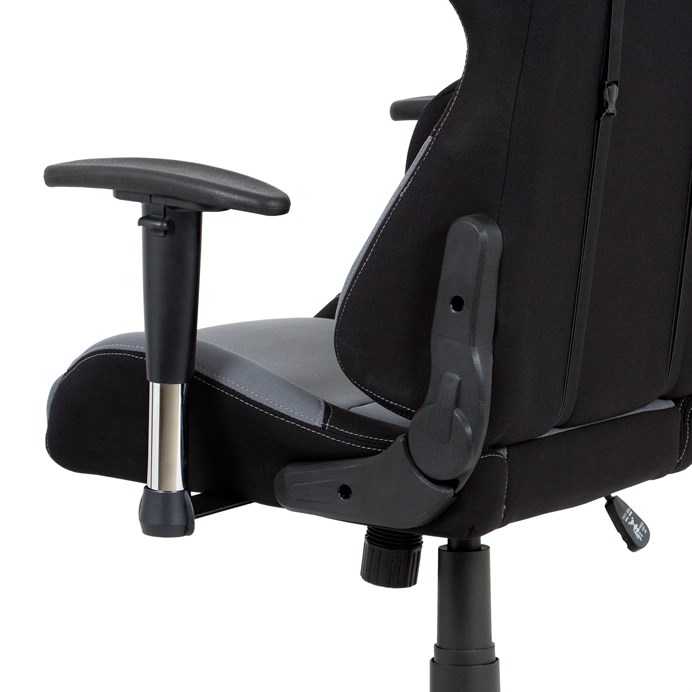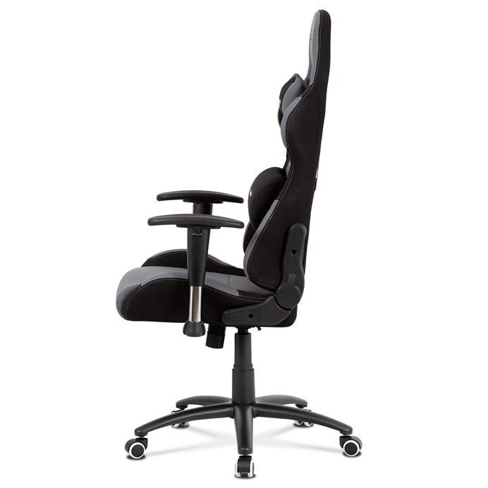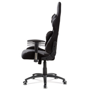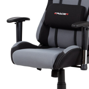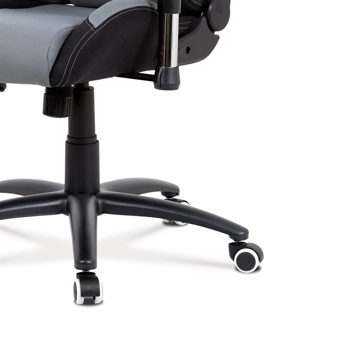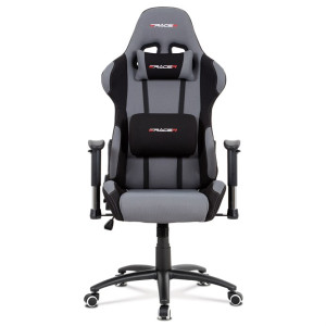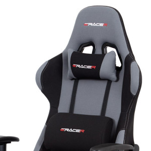 Herní křeslo E-racer nabízí komfortní sezení díky potahu z kvalitní šedé a černé látky, která je příjemná na dotek a snadno se udržuje. Robustní kovový kříž zajišťuje stabilitu a dlouhou životnost, zatímco houpací mechanismus umožňuje plynulé nastavení náklonu sedáku a opěradla v rozsahu 90° až 180°, což podporuje ergonomické polohování během hraní i odpočinku. Výškově nastavitelné jednosměrné područky 1D přispívají k individuálnímu přizpůsobení a pohodlí uživatele. Celková konstrukce je navržena tak, aby poskytovala pevnou oporu zad i paží, což ocení zejména nároční hráči. Nosnost a přesné rozměry jsou optimalizovány pro běžné uživatele, kteří hledají kombinaci funkčnosti a stylového designu.