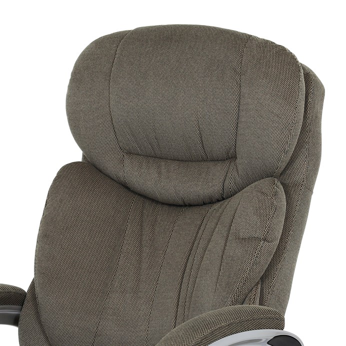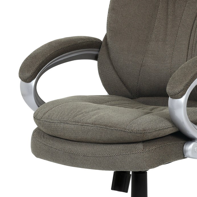 Kancelářská židle s houpacím mechanismem a pevnými čalouněnými područkami nabízí pohodlné sezení v moderním šedém provedení. Sedák i opěradlo jsou potažené kvalitní látkou s designovým prošitím, přičemž vrchní část sedáku je navíc vyměkčená pro zvýšení komfortu. Stabilní kovový kříž zajišťuje pevnou oporu a hladký pohyb na kolečkách vhodných pro různé typy podlah. Výškově nastavitelná židle umožňuje individuální přizpůsobení pracovní pozice, což podporuje ergonomii během dlouhých hodin práce. Absence bederní opěrky a opěrky hlavy je kompenzována tvarováním opěradla, které přispívá k základnímu pohodlí uživatele.