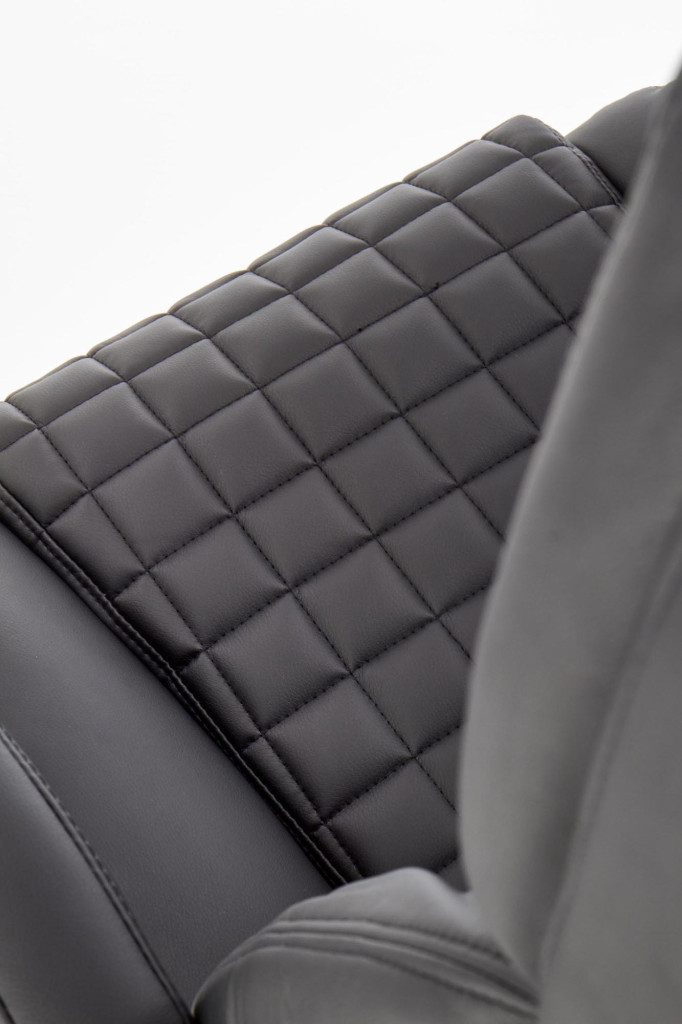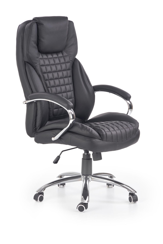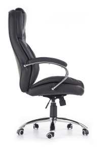 Kancelářské křeslo je potažené černou eko kůží a jeho stabilita je zaručena klasickou chromovanou základnou s pěti kolečky. Křeslo využívá mechanismu TILT, který umožňuje díky plynovému zvedáku snadnou regulaci výšky sedáku. Pomocí šroubu pod sedákem je možné nastavit polohu. Nosnost křesla je 120 kg.