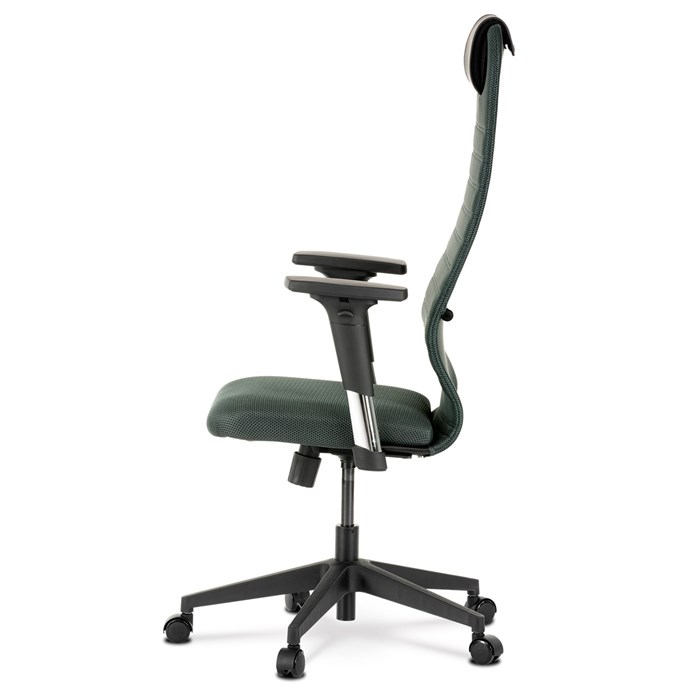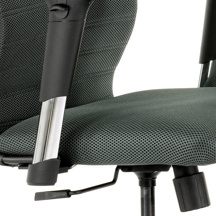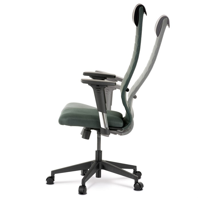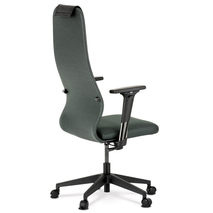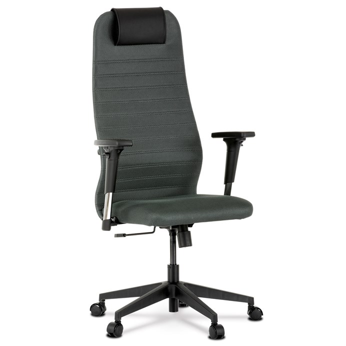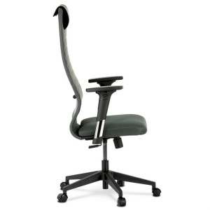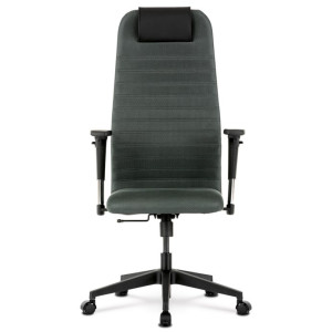 Kancelářské křeslo s šedým potahem z kombinace látky a ekokůže nabízí ergonomicky tvarovaný opěrák s výškovým nastavením, který podporuje správné držení těla během dlouhých hodin sezení. Opěrák hlavy a bederní opěrka přispívají k celkovému komfortu a odlehčují zatížení krční a bederní oblasti. Křeslo je vybaveno houpacím mechanismem, který umožňuje plynulé naklápění a zajištění v požadované poloze. Područky typu 2D jsou nastavitelné ve dvou směrech, což umožňuje přizpůsobení individuálním potřebám uživatele. Stabilní plastový kříž s pěti kolečky zajišťuje snadnou mobilitu a pevnost celé židle.