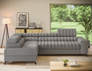 Dotaz na produktThe Kanedo corner sofa is a designer and highly functional upholstered piece that combines modern aesthetics with exceptional comfort, making it an ideal choice for a spacious living room or relaxation area. With overall dimensions of 269 × 204 × 86 cm and a weight of 146.2 kg, this model stands out for its solid construction and carefully profiled elements that provide ergonomic body support and outstanding relaxation. The seat is equipped with Type B wave springs and a combination of T3030 foam and profiled HR3030 high-resilience foam, ensuring optimal elasticity, durability, and long-lasting seating comfort even with intensive use. The backrest, filled with T2130 polyurethane foam, offers stable support and enhances everyday comfort. The Kanedo corner sofa features a practical sleeping function with a surface of 194 × 124 cm, while the Dolphin mechanism allows for quick and effortless unfolding. An additional advantage is the spacious bedding storage compartment measuring 180 × 92 × 17 cm, providing convenient storage for textiles and making the Kanedo corner sofa an excellent choice for those looking for a modern corner sofa with a sleeping function, storage space, and durable, high-quality filling.Fabrics: Paolli 04