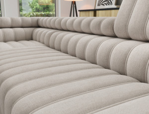 Dotaz na produktThe Kanedo corner sofa is a designer and highly functional upholstered piece that combines modern aesthetics with exceptional comfort, making it an ideal choice for a spacious living room or relaxation area. With overall dimensions of 269 × 204 × 86 cm and a weight of 146.2 kg, this model stands out for its solid construction and carefully profiled elements that provide ergonomic body support and outstanding relaxation. The seat is equipped with Type B wave springs and a combination of T3030 foam and profiled HR3030 high-resilience foam, ensuring optimal elasticity, durability, and long-lasting seating comfort even with intensive use. The backrest, filled with T2130 polyurethane foam, offers stable support and enhances everyday comfort. The Kanedo corner sofa features a practical sleeping function with a surface of 194 × 124 cm, while the Dolphin mechanism allows for quick and effortless unfolding. An additional advantage is the spacious bedding storage compartment measuring 180 × 92 × 17 cm, providing convenient storage for textiles and making the Kanedo corner sofa an excellent choice for those looking for a modern corner sofa with a sleeping function, storage space, and durable, high-quality filling.Fabrics: Raquel 18