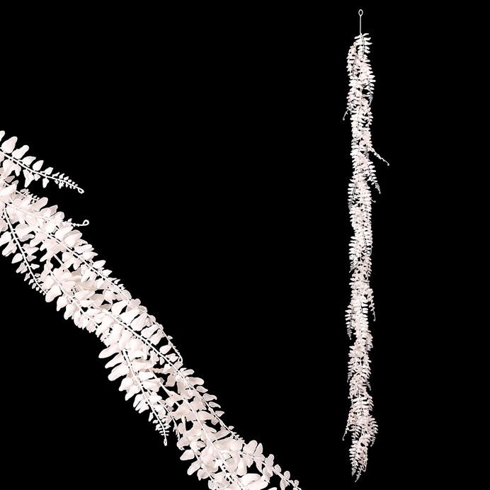 Dotaz na produktOživte své sváteční prostory s naší umělou girlandou z lístků kapradin v elegantní bílé barvě. Takto dekorace přináší do vašeho domova zpříjemnění vánoční atmosféry, která navíc vydrží po celé sváteční období, i mnoho dalších v budoucnu. Každý detail jednotlivého lístečku je pečlivě navržen, aby tvarově vytvořil realistický vzhled. Girlanda je ideální dekorací na pověšení a můžete ji nechat vyniknout samostatně, anebo ji ještě vyzdobit nejrůznějšími barevnými prvky. Díky svému umělému provedení vám ve stejném stavu vydrží prakticky napořád, a nemusíte řešit neustálé uklízení popadaných částí z uschlých větviček u živých rostlin.