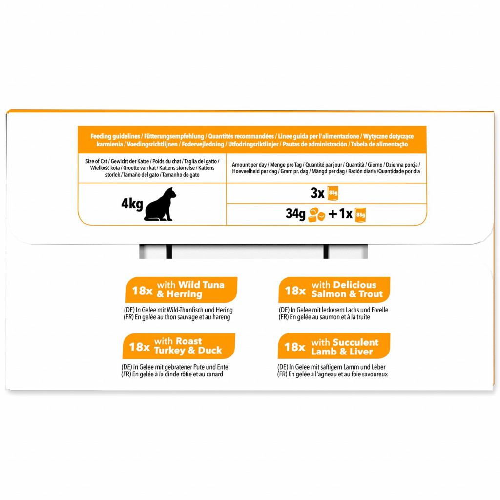 Kolekce obsahuje čtyři lahodné receptury v rosolu, které si vaše kočka zamiluje.
