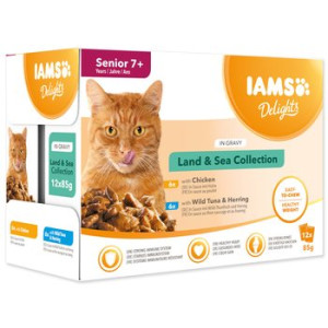Dotaz na produktIAMS Delights Senior Land & Sea Collection v omáčce má 100% kompletní složení, vhodné pro každodenní výživu starších koček. Obsahuje dvě lahodné varianty: s kuřecím a se sleděm a tuňákem. Receptury jsou obohaceny o cenné vitamíny a minerály a obsahují také taurin. Umělá barviva a aromata nejsou obsažena.