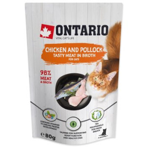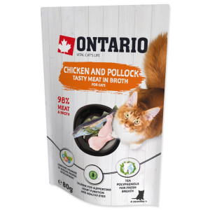Dotaz na produktDoplňkové krmivo pro kočky s kuřecím masem a treskou polak ve vývaru.
